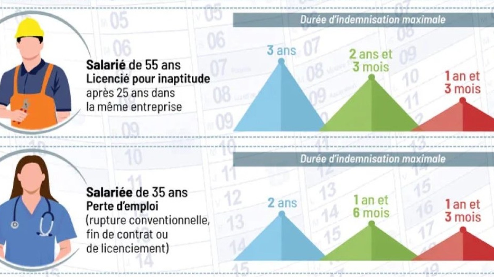- Réduction de la durée d’indemnisation (maximum à 15 mois) pour tous les allocataires ayant travaillé plus de 20 mois