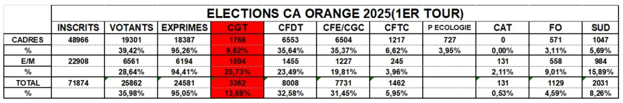 Groupe Orange : Communiqué résultats 1er tour élections Conseil d'Admnistration